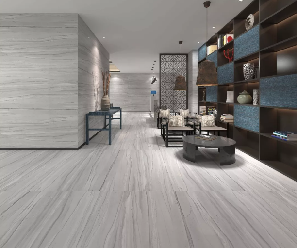 偌大的公共区域地面配上东鹏保加利亚灰,却给人以干净纯粹的感觉,同时刻画着灰色的沉稳时尚,架构着现代轻奢的气质格调,完美诠释出简约时尚不失低调内敛的空间氛围,体现出都市化社会生活的精致与个性。