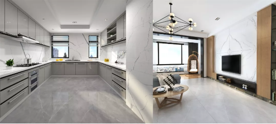 采用全新的一体化多通道多功能喷墨打印技术,避免天然材质的色差。中庸的灰色 色调,朴素典雅、稳重内秀、温和、谦让、近冷则暖,近暖则冷。白色线纹搭配其中,粗细搭配和谐,使整个版面显得清晰工整,最有现代感和平静感。在大面积铺贴时,成为了一张具有轻奢质感和时尚气息的王牌。