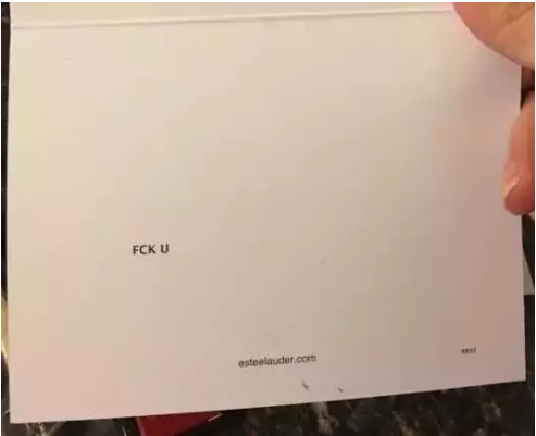 雅诗兰黛,中国顾客要求在贺卡上写LOVE U MOM。然而工作人员在看到顾客为中国名字后,寄去了印有FCK U的贺卡。