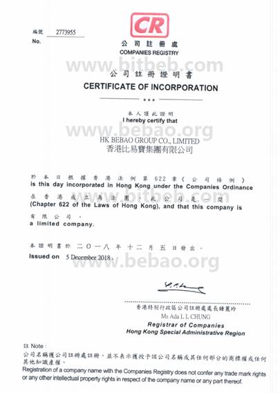 香港比易宝集团有限公司(BEBAO GROUP CO.,LIMITED),则是比易宝项目的研发者及运营者,成立于香港,凭借多年技术研发经验与丰富的运营经验,目前业务已经遍及包括日本、台湾、新加波、马来西亚等世界的多个国家。集团目前拥有成员百余人,其中包括国内外有着丰富的资源和经验的相关领域资深专家。