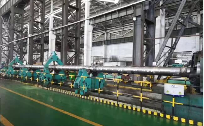 此件螺旋桨轴长约22.5米,重约20吨,是武汉重工承接的空心细长轴类产品中最长的一件,也是国内第一件。从锻造、热处理到机加工的深孔、外圆、法兰孔加工,直至最后的包装、发货,所有流程精益求精,过程控制严格,确保产品质量。