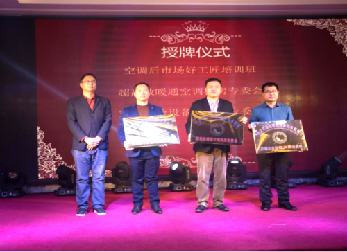 晚宴期间,中关村绿建联盟对新成立的“空调后市场好工匠培训班”、“超高效暖通空调机房专委会”、“空调制冷设备再制造专委会”分别授予了机构铜牌。