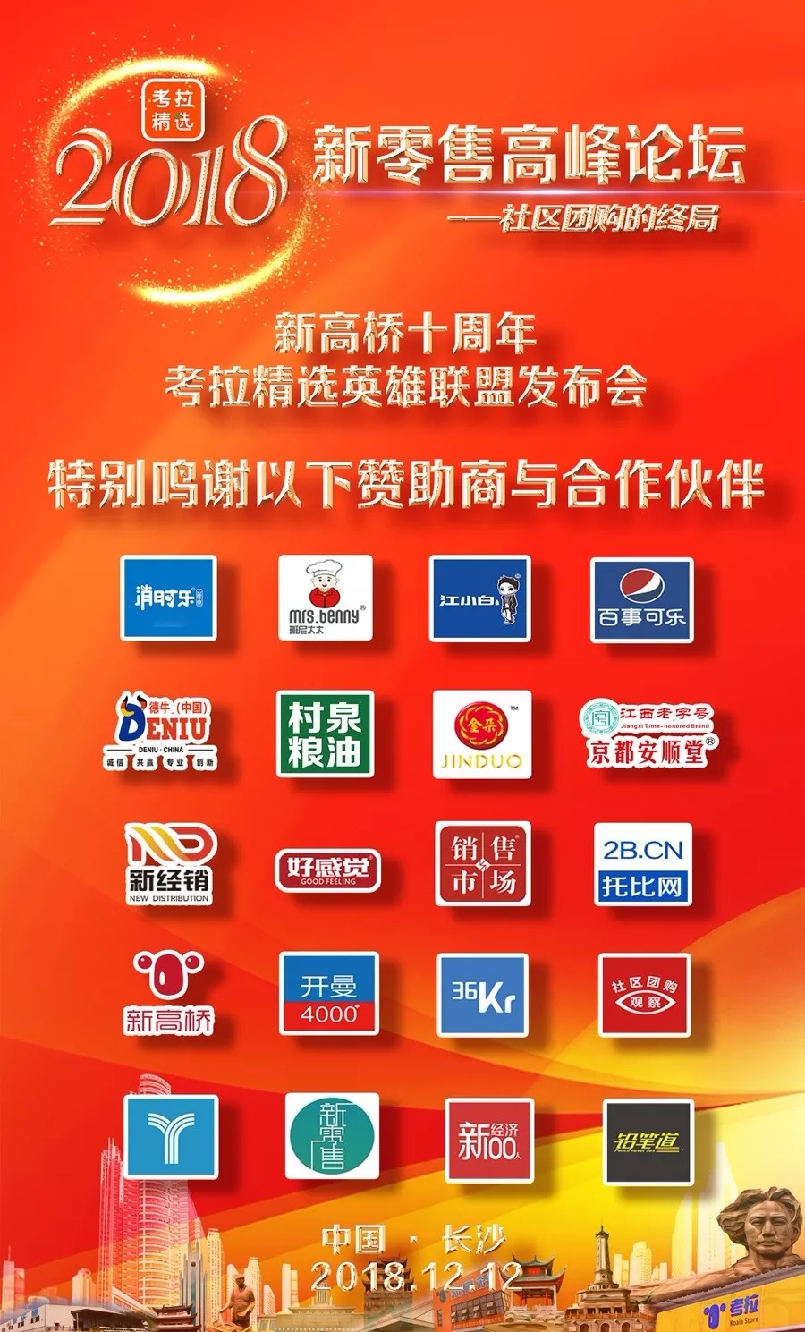2018年12月12日,在全国社区团购的发源地与主战场“星城长沙”,新高桥作为全国第一家快消品B2B做社区团购的公司,旗下的“考拉精选”所举办发起的《“社区团购终局”新零售高峰论坛》大会在长沙瑞吉酒店隆重召开。“考拉精选城市合伙人”计划正式启动,聚天下英雄共谋大业,助力赋能各位合作伙伴转型升级,携手共创共享共赢!