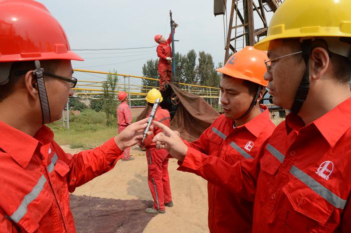 图为9月6日,该厂工艺技术人员正在卫1018井准备采用“偏心测调一体化技术”设备施工。