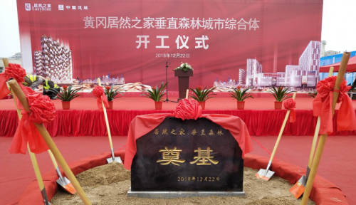 12月22日10时58分, 黄冈居然之家垂直森林城市综合体项目(简称“黄冈垂直森林”)破雨开工。 居然之家垂直森林置业有限公司、博埃里建筑设计事务所、中南建筑设计院股份有限公司,中建三局集团有限公司,北京方圆工程监理有限公司单位代表,各协作单位领导及特邀嘉宾约100人共同参加了此次开工仪式。