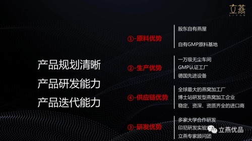 立燕整合燕窝行业上下游的龙头企业,拥有4大供应链优势。