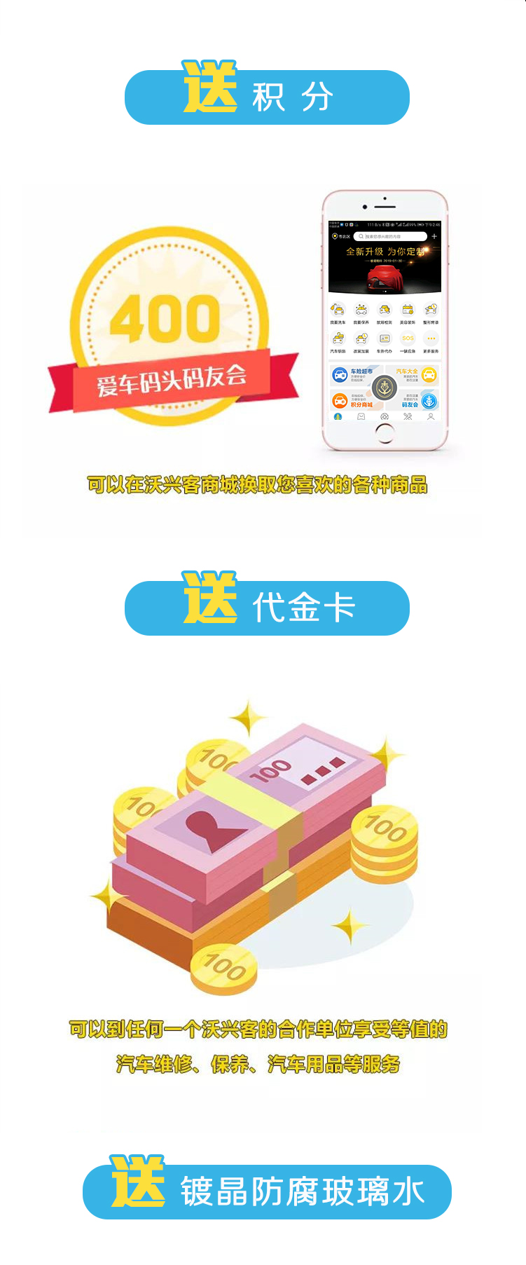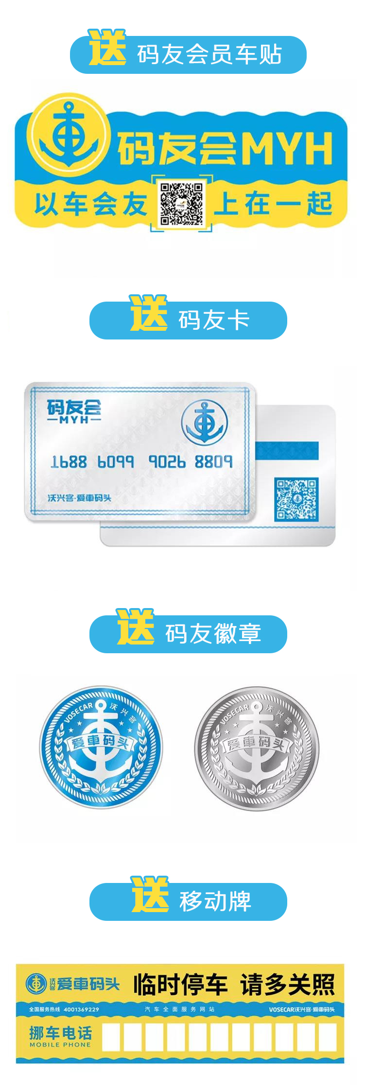 2、码友会员享有玻璃水、遥控电池、专属车标、移车牌等等一大堆汽车用品免费领,走到哪里,哪里领,既方便又省钱。