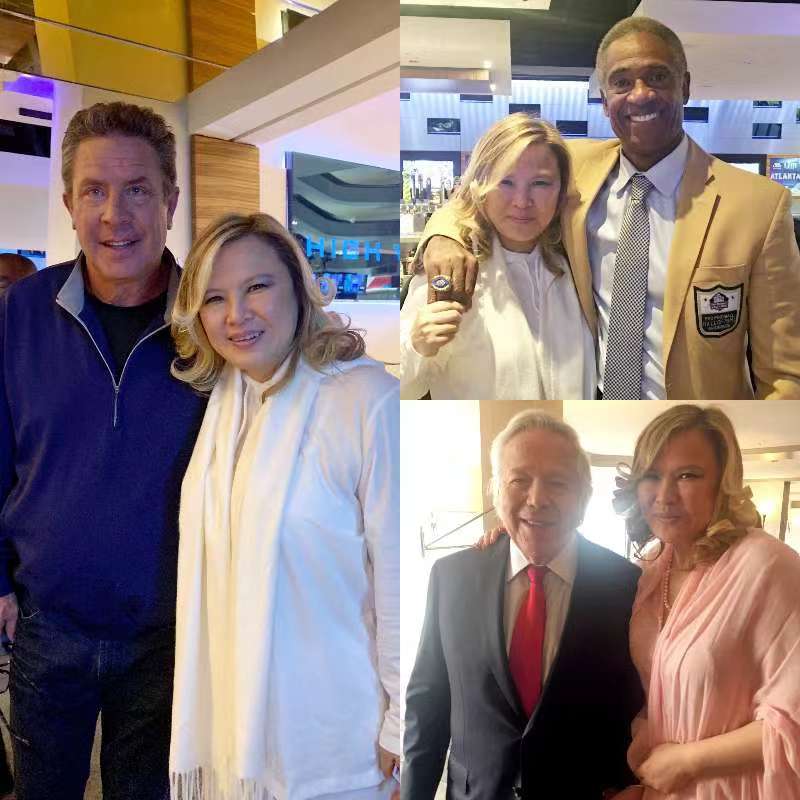 李雪锐女士还有幸见到了罗伯特·克拉夫特先生,“新英格兰爱国者队,美国职业橄榄球联盟的新英格兰革命队的老板还拥有吉列体育场,两队都参加了比赛”,以及前橄榄球队员,四分卫丹·马里诺,其为NFL的迈阿密海豚队打了17个赛季的比赛。