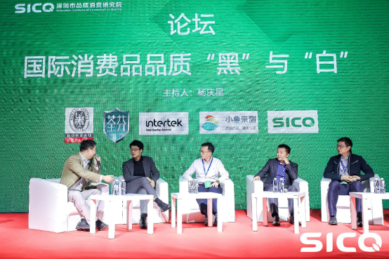 左起:深圳品质消费研究院杨庆星院长,水中银小鱼亲测、香港十大杰出青年陈子翔,荃芬董事长杜炜东,ITS天祥检测李兆新,SICQ深圳品质研究院李智儒