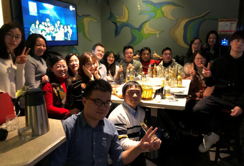 结束了滑冰项目,部分学员和学习中心工作人员一起就餐,席间大家用英语描述菜肴 ,交流吃货心得,Jonathan还在学员们的怂恿下,尝试吃了人生第一个鸡爪,他还鼓励学员们不论是生活还是学习,都要勇于尝试,战胜胆怯和忧虑。