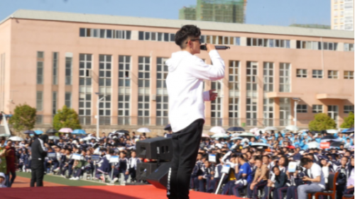 保一中操场上,有来自保一中、隆阳区一中、保山市第二小学、保六中、智源小学、智源中学的数千名学生。段林希现场为大家演唱了两首主打歌《时而》和《小楷》,并与保一中陈陈圣日校长合唱了歌曲《为了谁》,精彩的演唱赢得了同学们的阵阵掌声。
