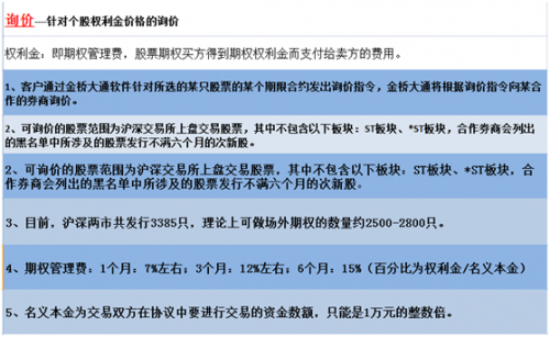 个人投资者要通过机构第三方进行一个合作,个人投资者须提供要操作的个股,机构会即时与券商询价(权利金)告知投资者,投资者再确定是否购买权利。