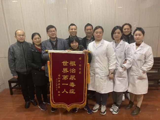 案例二:黄素萍,家在安徽省宿松县洲头乡坝头街。是96年在合肥郑专家这里治好尿毒症的。她的尿毒症是由慢性肾炎转变来的,在农村一直以为身体能动就没有病,直到96年肌酐查出来1330,医生都说不透析就不给治疗了才不知道该怎么办。后来打听到合肥有一个郑专家治疗尿毒症疗效非常好,治好了很多人才决定来看看。见到专家,开始在郑专家这里治疗,记得半个月检查肌酐就下降了130,一个月肌酐就降到了890。大概半年的时间去复查肌酐降到了81,完全康复了。现在治愈也有23年了,什么都能吃了,家里也干了不少的活。她说也有不少的人问她是在哪里治好的,她都如实说了,是希望他们能想她一样找到专家,能完全治好。她介绍来的周荣花等也都完全治好了,专家是在治疗尿毒症上是世界上最厉害的医生。
