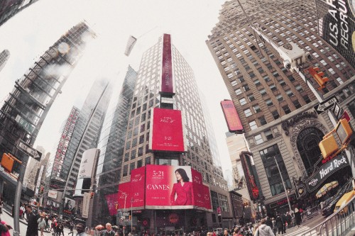4月22日,11块巨大的玫红广告牌出现在号称“世界十字路口”的纽约时代广场。耀眼的玫红背景、身着玫红套装的中国女性和“wating for you in Cannes”(在戛纳等你)的广告语,勾起往来路人的强烈好奇。