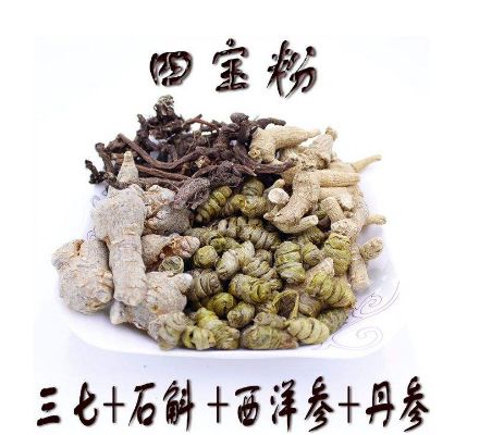 我呀,是由由西洋参+三七+丹参+石斛按1:1:1:1的比例混合打粉制而成的。