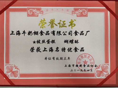 为推进品牌建设、弘扬中华文化、传承创新发展、践行低碳理念。上海市糖制食品协会于2019年4月25日开展了第十七届上海名特优食品评审活动。经行业高级技师和市质监专家组成的评审组,对申报产品的“质量水平、产品标识、质保状况、产销能力和企业形象”等五个方面进行逐项严格评审,最终牛奶棚食品生产的两款产品——拔丝蛋糕和蝴蝶酥,荣获2019年上海市名特优食品称号。