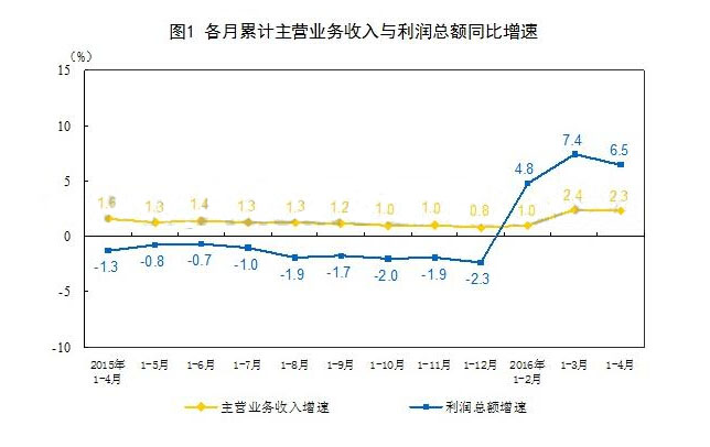 ??? 国家统计局最新数据公布,2016年14月份,中国规模以上工业企业主营业务收入为335613.亿元,同比增长23.%;实现利润总额18442.2亿元,同比增长6.5%,增速比13月份回落0.9个百分点。在前3个月利润增速冲高至7.4%之后,14月份中国工业企业利润增长开始放缓。其中,橡胶和塑料制品业主营业务收入为9545.9亿元,同比增长5.0%;实现利润572.9亿元,同比增长12.8%。