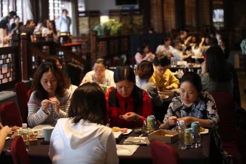 随后,现场进行了丰富的互动体验活动。童涵春堂的香囊展示,体现中国文化传承,又符合节令特点;豫园美食分享,让与会人员品尝了成功转型为网红的乔老爷松糕和味道正宗的松鹤楼粽子。接下来的商圈游览环节,童涵春堂中医博物馆、九曲桥给大家留下了深刻印象。