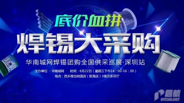 号外号外!华南城网焊锡团购全国供采巡展首秀6月22日即将登陆深圳。六重惊喜提前看:现场扫码送礼品、巡展精品展示、焊锡供采沙龙、建立焊锡采购商友圈资源分享、优惠券现场抢拍、供采匹配一对一交流。焊锡团购供采巡展即将为采购商、供应商们带来一场惊喜十足的行业交流盛会。