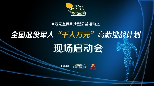 据了解,#万元点兵#大型公益活动之全国首届退役军人“千人万元”高薪挑战计划启动后,全国退役士兵50人就业天团的海选将同时展开,预计在6月底在全国退役士兵中选拔300名种子选手进行面试,最终选出50人进行免费培训和推荐高薪就业。