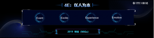 如何才能找准5G时代下更加以人为本的核心营销策略,从而创造用户价值和让价值增值?基于此咪咕公司提出了4E(Event,Excite,Experience,Emotion)这一新的营销模式。