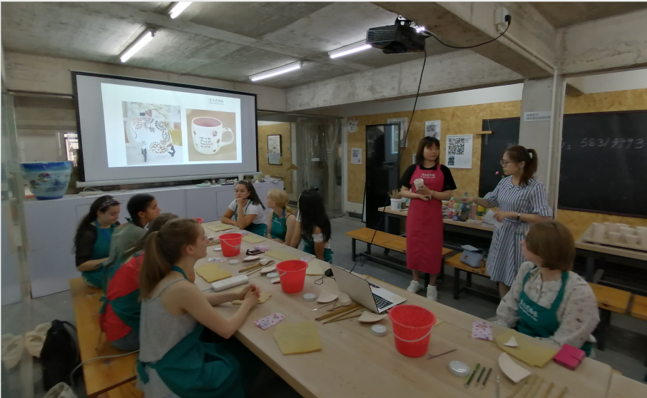 2019年7月3日,在南京信息工程大学的组织和带领下,南京青花瓷陶艺活动中心迎来了一批国际友人,21名英国雷丁大学师生在这里体验了一堂主题为“陶瓷文化碰撞城市印象”的培训课,此次是雷丁大学的中国夏令营实践活动,旨在学习中国传统文化、感受南京城市印象。