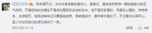 不过歌曲中有些词还是不错的,比如“是霜寒已未及锋寒,是刃尖掀八荒波澜”,就有点儿太白门派主张“意随剑走,剑在意先”的意思。