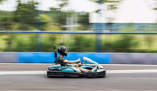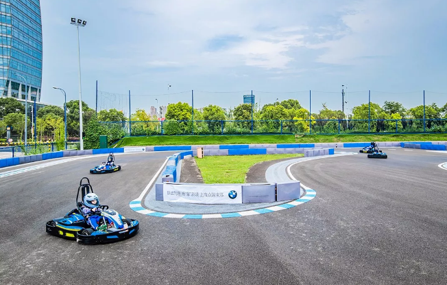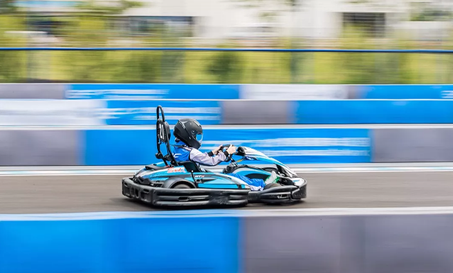 一切准备就绪,即刻挥旗出发!一辆辆纯电动卡丁赛车瞬间冲出发车区,油门、刹车、方向盘流畅操作、完美配合。赛道上,来宾们如F1赛车手般进行着属于自己的新能源赛事。