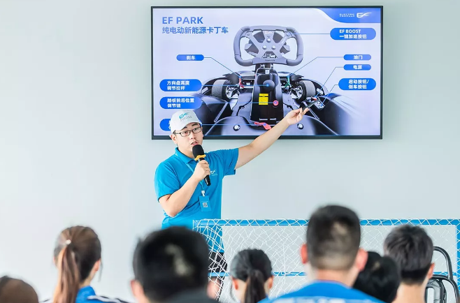 为了让参与者更加深入体验新能源别样驾乘乐趣,同时作为活动的重要环节,EF PARK ?为到场的亲子家庭、新老车主、体验用户等来宾,精心定制了新能源纯电动卡丁车赛。