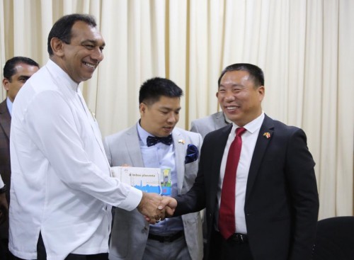 (图为史初弘霖董事长潘文浩(David)先生与斯里兰卡副总统赠礼留影)