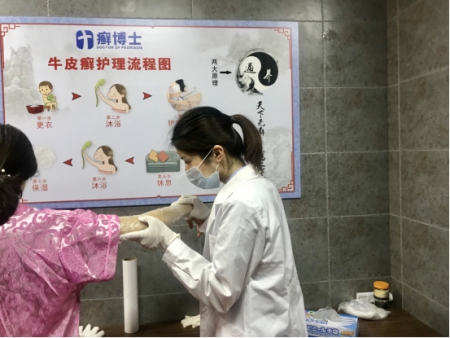 据厦门癣博士负责人萧先生介绍,其实牛皮癣从另一个角度看,并没那么可怕,把治疗牛皮癣看作是一个美容皮肤的项目,就好比女性护理自己皮肤一样,纯中药独家配制的护理膏,直接作用于皮肤,配合高温汗蒸,加速毛孔打开,促进皮肤对护理膏的吸收,达到短期内见效,稳定皮肤的一个状况,这个状况也就是无异于常人的皮肤状况。不仅如此,厦门癣博士对每个牛皮癣、鱼鳞病客户都会私人订制护理方案,因人而异把复发率降到最低,最重要的是,这种方式不需要长期依赖护理膏,后期只需要用普通的润肤乳代替护理即可。