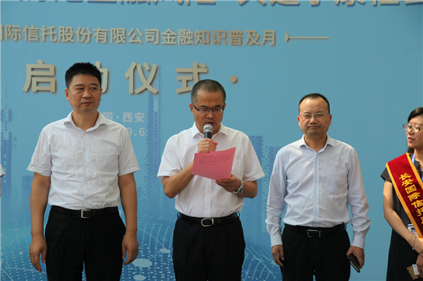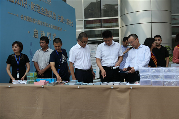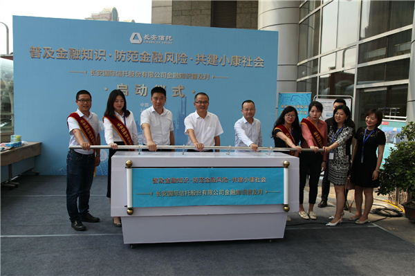 长安信托股份有限公司为落实“一行两会”关于金融知识普及月活动的要求,于9月6日在高新国际商务大厦广场举办了以 “普及金融知识 防范金融风险 共建小康社会”为主题的金融知识普及月启动仪式。长安国际信托公司领导、消保办、各部门消保专员及发行部门员工代表出席本次活动。