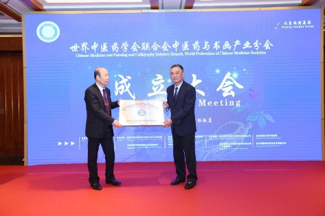 世界中医药学会联合会中医药与书画产业分会成立大会于2019年10月18日上午在北京召开。此举,标志着世界有了从事“中医药书画”的国际性组织,拉开了建立中医药书画体系的序幕,用书画艺术表现中医药文化成为又一弘扬和发展中医药文化的重要载体。