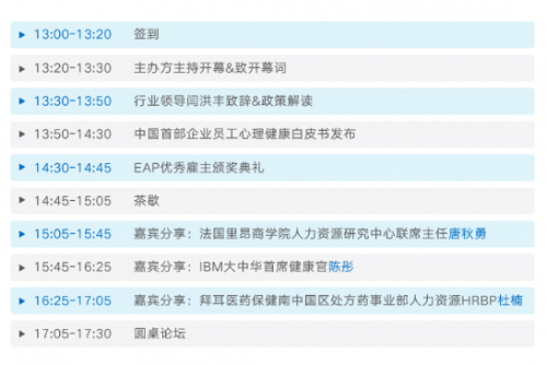 本届年会中智EAP将发布《20092019中国企业员工心理健康白皮书》,解读不同行业不同人群员工心理健康现状、发展趋势及影响因素,为企业提供具有指导性的数据支持,促进健康企业建设。