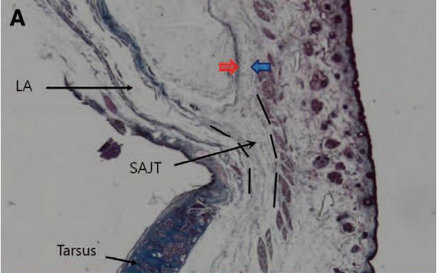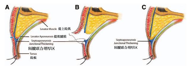 "莎吉特"并不是一个包装名词,而是一个组织部位——隔腱联合增厚区(眶隔膜和提上睑肌腱膜交汇处的组织腱性增厚区域)的英文Septoaponeurosis Junctional Thickening的缩写"SAJT"的音译。