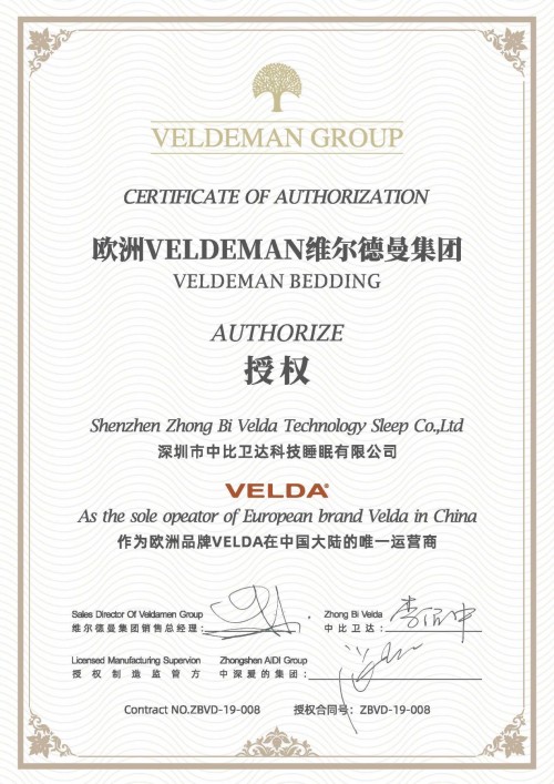 同时,此次Veldeman集团与深圳中比卫达科技睡眠公司举办了签约发布会,是VELDA在亚太市场迈出重要的一步。作为欧洲最系统、最前沿的整体睡眠系统制造商之一的Veldeman集团,旗下拥有众多品牌,包含VELDA、VIV、GLOCOM、FYLDS'、VVIF、DUCAL、ONEA、Finesse、CREEN FIELD等多个寝室品牌,囊括弹簧床架、床垫、排骨架、固定床或可调整式床系统等多个寝具品类;然现由深圳市中比卫达科技睡眠有限公司负责Veldeman集团旗下众多品牌的亚太地区授权。