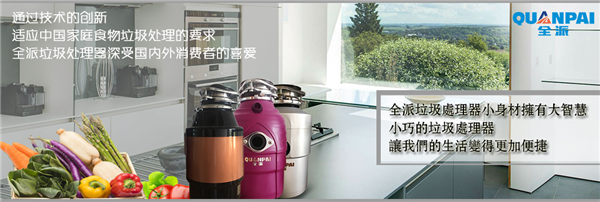 浙江全派垃圾处理器制造有限公司,致力于研究绿色家用电器,成为城市的清洁者,全派垃圾处理器将厨余垃圾、生活垃圾有效处理,方便快捷,不管是瓜壳果皮,还是菜叶菜梗,只需将厨房垃圾倒进处理器将垃圾安全快速的粉碎成熔浆状态,顺着下水道冲走,没有残留,环保快捷,人们再也不用将食物垃圾倒入垃圾桶,引起蝇虫细菌。全派垃圾处理器环保节约,还你健康洁净美好生活。