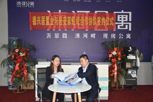 2019年10月10日上午,中丘控股旗下报媒不动产全资子公司居安家房地产经纪有限公司与临沂德兴居置业有限公司,在涑河公寓销售中心举行了隆重的签约仪式。中丘投资控股有限公司常务总裁黄建先生与临沂德兴居置业有限公司付总共同出席见证了此次签约仪式。