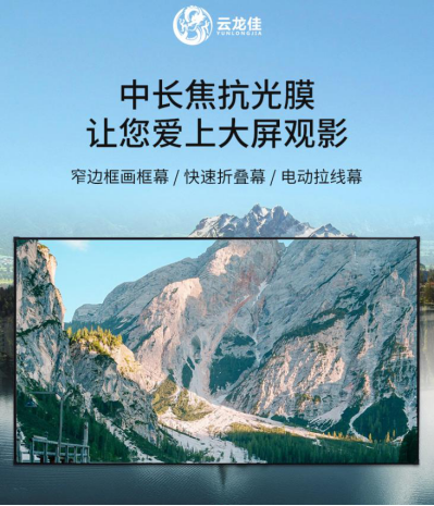云龙佳窄边框画框幕之所以能够给消费者在家就能享受大屏观影体验,主要归功于本身的材质。云龙佳幕面采用环保耐用的材质,以异形阵列多层光学微粒结构,能更好的实现优化投影投射光线,表面的光学过滤层能更好的吸收环境光,提升色彩视觉效果。还原投机的实际投射动态补偿效果。