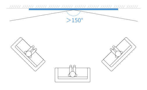 若是家里来客人了,人多位置难免坐的比较偏倚,坐在不居中的人观看投影还有效果吗?云龙佳窄边框画框幕独特的投影原理,让你拥有更广的可视范围。可视角度>150°,让各个角度观看画面都能清晰可见,人再多也不用担心。