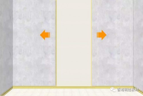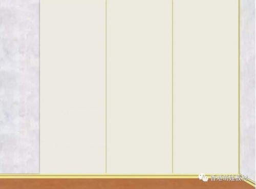 第一种:由门套或 墙角开始,从左到右或 从右到左整块安装,安 装到最后一块饰板时, 可根据实际到边距离修 正饰板尺寸后安装。