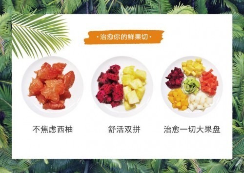 在北京这样繁忙的一线都市,白领过着“两点一线”的生活,没有多余的时间或精力去管理自身健康,更迫切地需要一个适当的空间来释放压力。正是以消费者的需求为驱动力,珍仕菓七范儿店主打“治愈”概念,首次推出了“治愈一切大果盘”、“不焦虑西柚”、“元气三拼”等“治愈系”鲜果切,拓展出了全新的产品线,以满足白领的轻食、配酒、夜宵需求,同时通过风趣幽默的品牌语言引起消费者的心理共鸣。