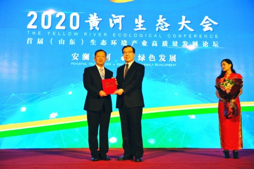 2020年1月6日7日,黄河生态大会—首届(山东)生态环境产业高质量发展论坛在济南南郊宾馆隆重举行。山东省委常委、统战部部长张江汀,中国工程院院士姜德生, 全国工商联扶贫与社会服务部部长、绿色发展委员会副主任王力涛,生态环境部综合司督察专员、全国工商联绿色发展委员会副主任夏光,山东省委统战部副部长、省工商联党组书记周云平,山东省科学技术厅副厅长潘军,山东省工业和信息化厅副厅长孔庆成,山东省生态环境厅一级巡视员葛为砚,山东省工商联党组副书记、副主席、一级巡视员孙占甲,原济南大学党委书记、校长程新以及人民银行、民生银行相关负责人、媒体等各界人士800余人汇聚一堂,共商“政产学研金服用”创新融合发展,共话初心使命、强化责任担当,齐心协力开创黄河流域生态保护和高质量发展新局面。