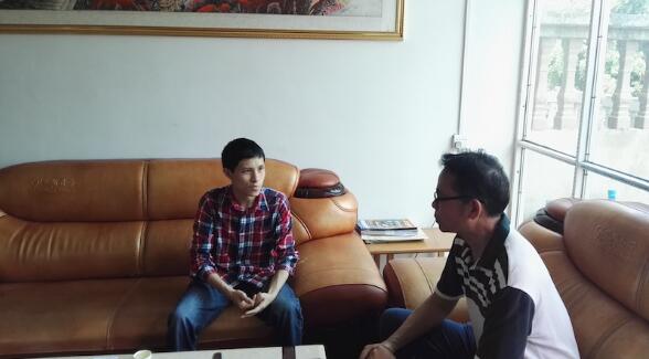 广西建材电商平台创建人谢少东(图左)在接受记者采访
