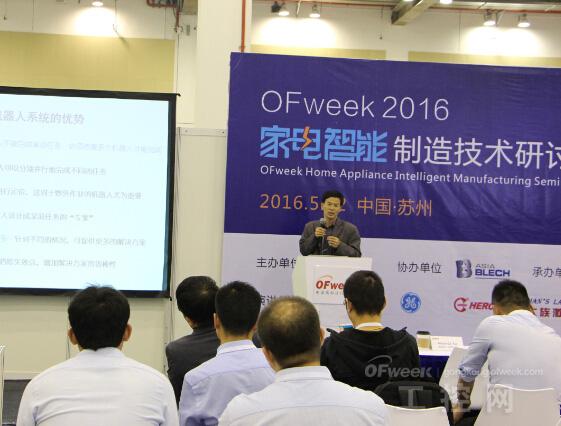 在此背景下,由OFweek高科技行业门户主办,OFweek工控网承办的《OFweek2016家电智能制造技术研讨会》今日在苏州国际博览中心隆重举办。本次会议邀请了来自通用电气、大族激光、广州亨龙智能装备、欧威尔空调、上海交大等行业专家以及家电制造商,自动化系统集成商、钣金加工设备厂家行业精英,就"工业物联网"、"智慧工厂"、钣金焊接工艺、激光智能装备、工业机器人在家电行业的应用等话题进行了深入的探讨。