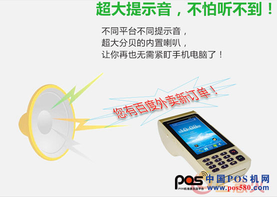 在用餐高峰期,业务繁忙,人声嘈杂,服务员忙前忙后,极易忘记外卖订单,单子来了也没人知道,怎么办?别急,生意火TPS390外卖接单机内置超大分贝喇叭,有超大提示音,且不同平台有不同提示音,让您再也无需盯手机电脑也能快速知道有订单来啦。
