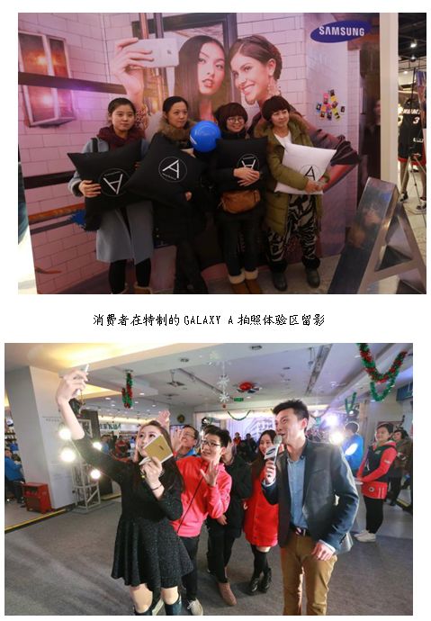 ??? 现场消费者不仅被GALAXY A潮流时尚的外表吸引,同时也为其强大丰富的功能体验驻足。三星GALAXY A5和A3均采用Super AMOLED 炫彩屏,鲜活世界跃然屏上,触手可 及。500万像素前置摄像头,大光圈超级广角自拍,就算是多位好友欢聚也可以通过自拍来实现。自动人脸识别,快速进入自拍模式,一键轻松切换美颜模式,一应俱 全。看脸的时代,自拍神器才是你傲视SNS星系的美丽任性之选。