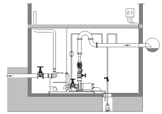 (3)水泵可采用干式安装,便于维修;带切刀的水泵不易堵塞;