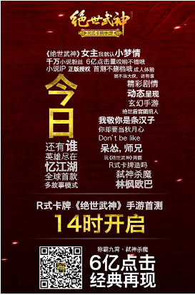 挥泪告别了科比退役,告别有你陪伴的青春,他结束了自己球场生涯的最后一战,这个夏天谁能再续辉煌?对于我们而言,科比的球场人生或许不尽人意,那么游戏人生千万不可错过,首款R式卡牌《绝世武神》手游今日14时正式开启安卓首测!此前《绝世武神》手游在各大媒体平台及官方渠道开放首测预约通道,短短一周时间便收到15万的预约信息,今日更已突破30万预约大关!而提起《绝世武神》主题曲MV,如今更是被广大网友争相模仿、翻唱的最火视频之一,MV主角则是以《明天不上班》一炮而红的嘻哈小天王谢帝,他创作的《绝世武神》主题曲也荣登2016年网络神曲排行榜第二!让我们通过这部《绝世武神》主题曲MV走近谢帝、走进这款备受瞩目的R式卡牌手游,带你穿越回到那个充满无限可能与惊奇的玄幻武侠时代!
