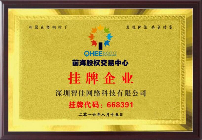 ? ? 2016年8月23日,深圳智佳金服的董事长吴世超出席前海股权交易中心上市敲钟仪式活动,随着恢弘的钟声,深圳智佳金服网络科技有限公司于2016年8月23日在深圳前海股权交易中心所挂牌上市,挂牌代码668391。